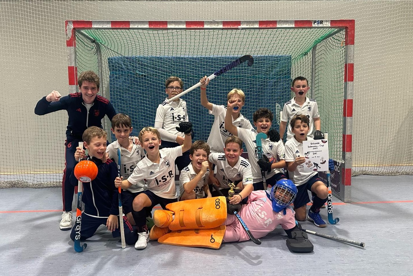 Am Halloween-Wochenende nahmen 11 Jungs unserer MU10 am Halloween Cup des GHTC in Mönchengladbach teil – und das mit großem Erfolg. In der stimmungsvoll dekorierten Indoorhalle zeigten die Jungs nicht nur tollen Hockeysport, sondern hatten auch sichtlich Spaß am gemeinsamen Spielen, Unterstützen und Anfeuern.
