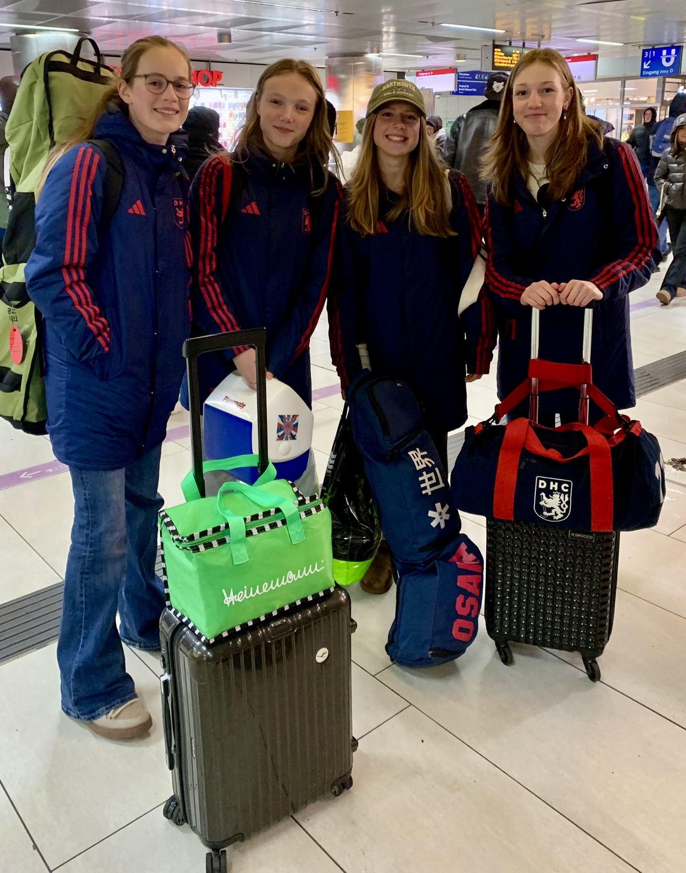 Das Hamburger Winter Wunderland sorgte für einige Herausforderungen bei der Anreise der 12 Spielerinnen, unserer Trainer Peter und Blaschi und den Betreuerinnen im Laufe des Freitags. Aus unterschiedlichsten Richtungen trudelten sie nach und nach bis spät in der Nacht ein, mit teils langen Verspätungen und verlorenem Gepäck (incl. Hockey-Outfit, für das noch schnell Ersatz besorgt werden musste).